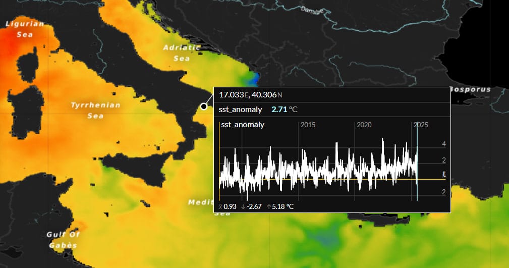 In un panorama mediatico sempre più dominato da titoli sensazionalistici e mappe fuorvianti, facciamo chiarezza con i dati reali. Analizziamo le anomalie termiche del Mar Mediterraneo (dati Copernicus), il bilancio termico e pluviometrico di Puglia e Basilicata e l’attuale ondata di caldo.