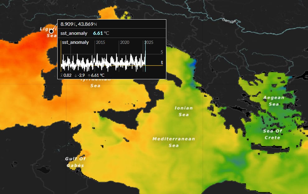 - Mar Ligure: +6.61°C di anomalia, record assoluto per l’area (dati Copernicus dal 2008)
