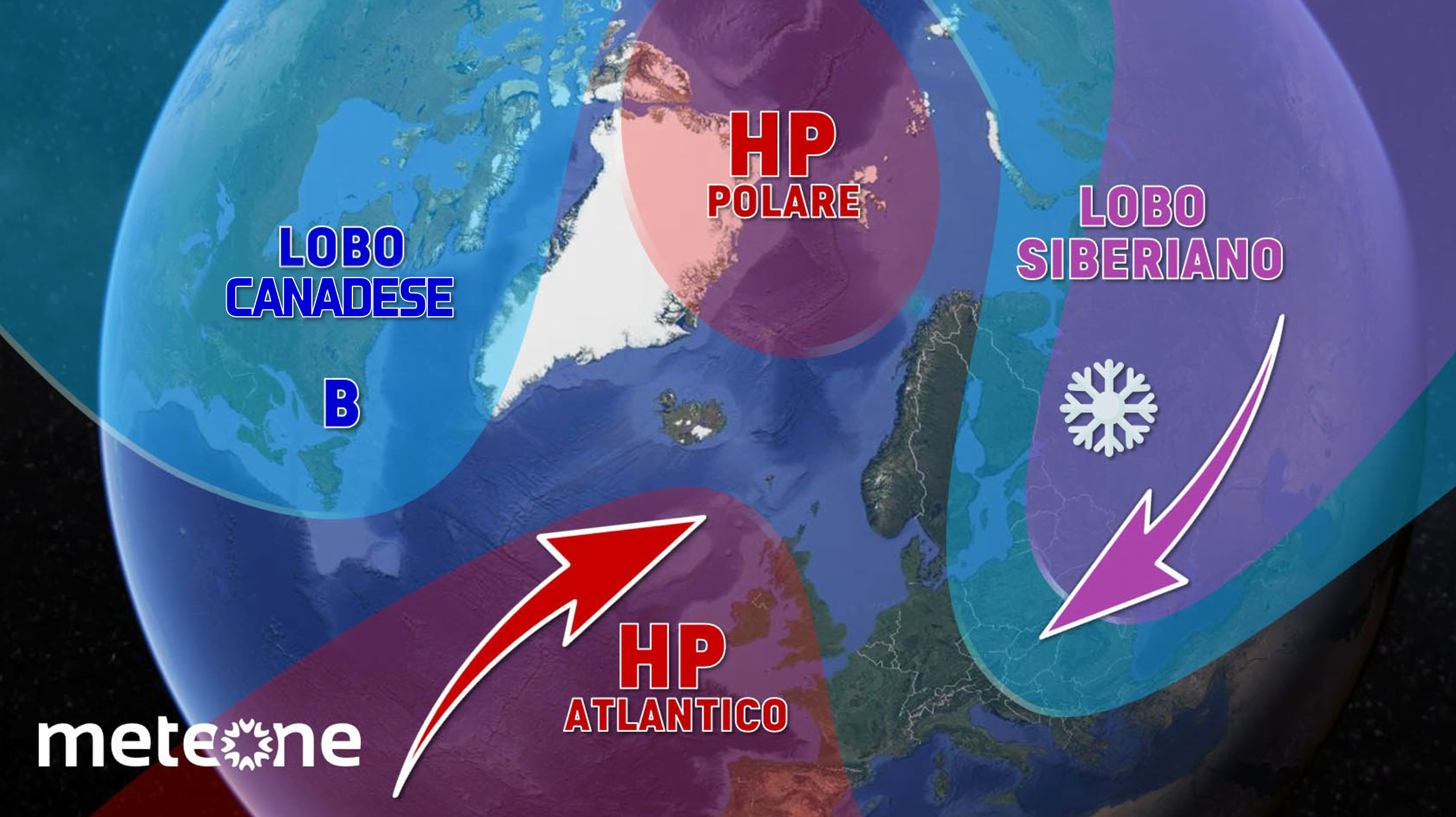 Nei prossimi giorni un'alta pressione si instaurerà sul polo, con i lobi del vortice polare che punteranno le basse latitudini.