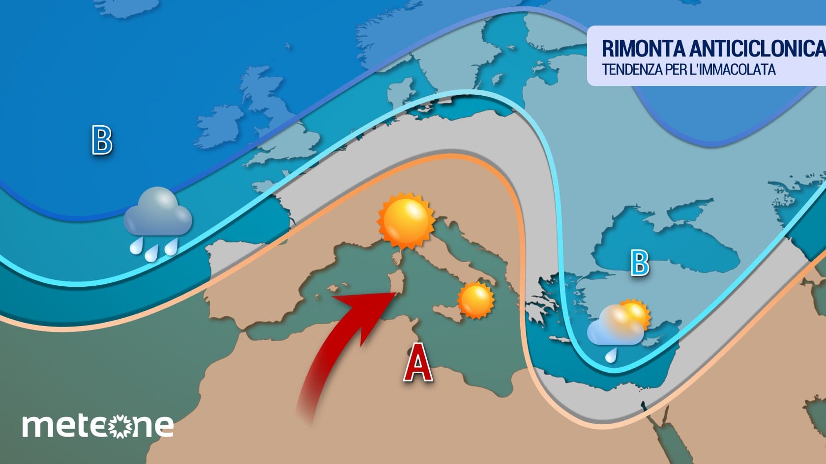 Un esteso e profondo vortice depressionario sull’Atlantico favorirà la risalita di un promontorio anticiclonico subtropicale verso il Mediterraneo centrale. L’alta pressione tenderà così ad abbracciare gran parte dell’Italia, pilotando aria più mite di origine subtropicale soprattutto tra Francia e Nord Italia