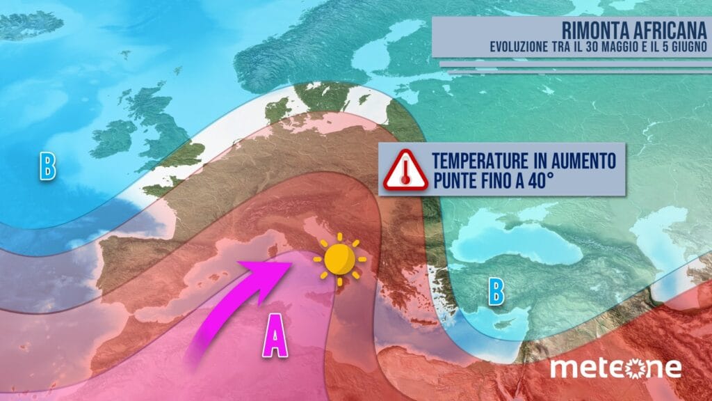 Nel corso della settimana, infatti, l’anticiclone nord-Africano espanderà la sua azione su gran parte del Mediterraneo, pilotando una massa d’aria molto calda prima sull’Europa occidentale e poi anche centrale, Italia compresa. Il risultato sarà un’intensa ondata di caldo, la prima che potrebbe far schizzare i termometri verso li muro dei 40 gradi.
