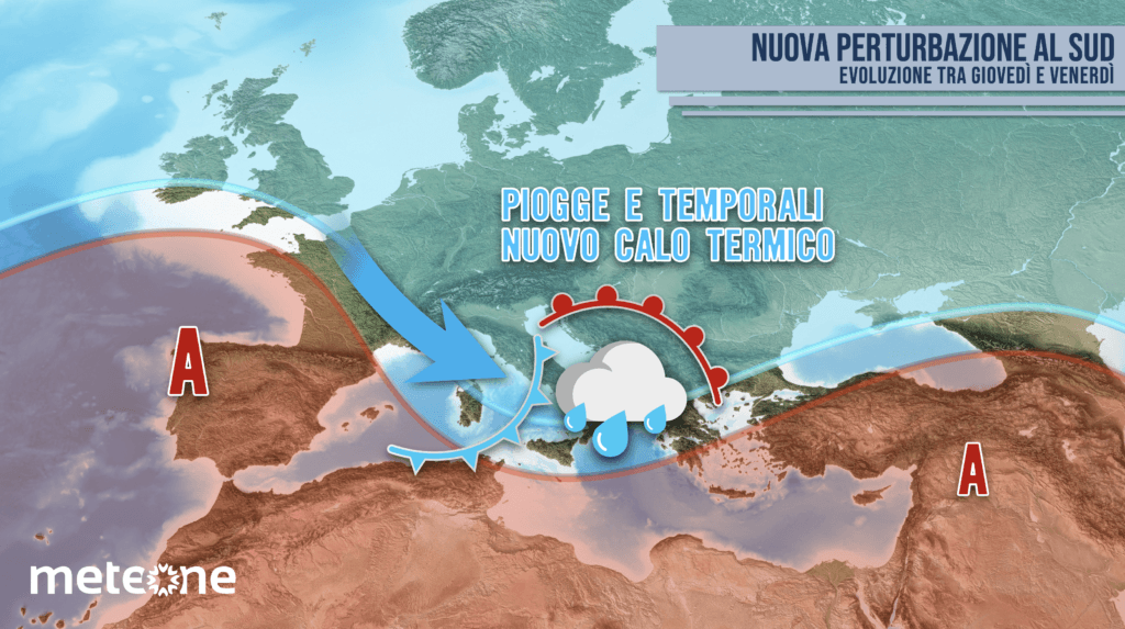 L’alta pressione delle Azzorre continua a restare defilata sul Mediterraneo occidentale mentre una perturbazione di origine atlantica, pilotata da una circolazione depressionaria al suolo, raggiungerà giovedì le regioni meridionali determinando un netto peggioramento delle condizioni meteo anche su Puglia e Basilicata.