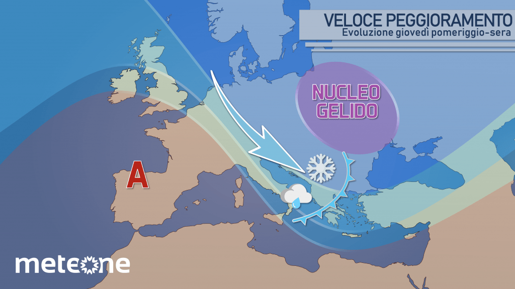 Nelle prossime ore, infatti, una massa d’aria molto fredda di origine artico-marittima (con successivo contributo artico-continentale) investirà i Balcani lambendo l’Italia: nel corso del weekend interesserà anche l’Italia e in particolare il medio-basso settore adriatico.