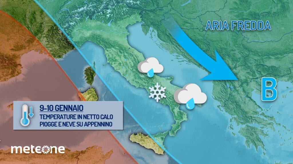 L’inverno ci prova. Dopo quasi un mese di alta pressione (le ultime piogge risalgono al 13 dicembre), all’inizio della nuova settimana il tempo peggiorerà anche su Puglia e Basilicata dove torneranno piogge, neve sui rilievi, forti venti e un clima di stampo più invernale.