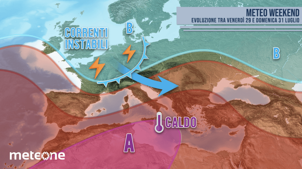 Non ci sarà un vero e proprio peggioramento del tempo, ma nuova instabilità con temporali a macchia di leopardo in particolare nel pomeriggio di sabato e in maniera più isolata domenica sui settori centro-settentrionali.