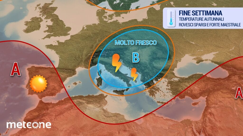 Sabato le massime saranno poco oltre i 20 gradi anche sulle coste (qualche grado in più domenica) e in nottata le minime andranno sotto quota 15 gradi nelle pianure interne. La sera sui rilievi si avvertirà il primo freddo con minime a una cifra, soprattutto lungo l’Appennino.
