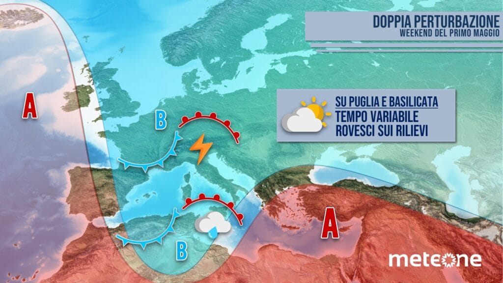 Tempo variabile, poche piogge e temperature vicine alla media. Questo il tempo che ci aspetta nel weekend del primo maggio su Puglia e Basilicata. Maggior instabilità è invece attesa all’inizio della nuova settimana, soprattutto nella giornata di lunedì.