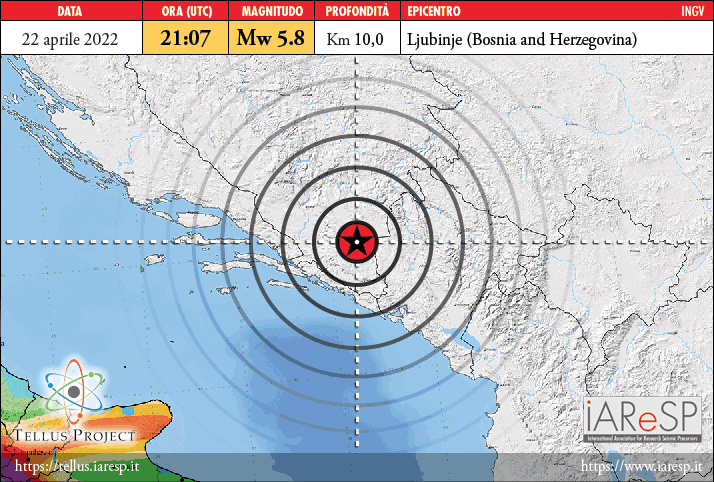 Un forte terremoto ha scosso i Balcani e l’Adriatico nella tarda serata del 22 Aprile: la scossa, di magnitudo 5.8, è stata registrata alle 23.07 in Bosnia ed Erzegovina, precisamente vicino Ljubinje, a circa 10 chilometri di profondità.
