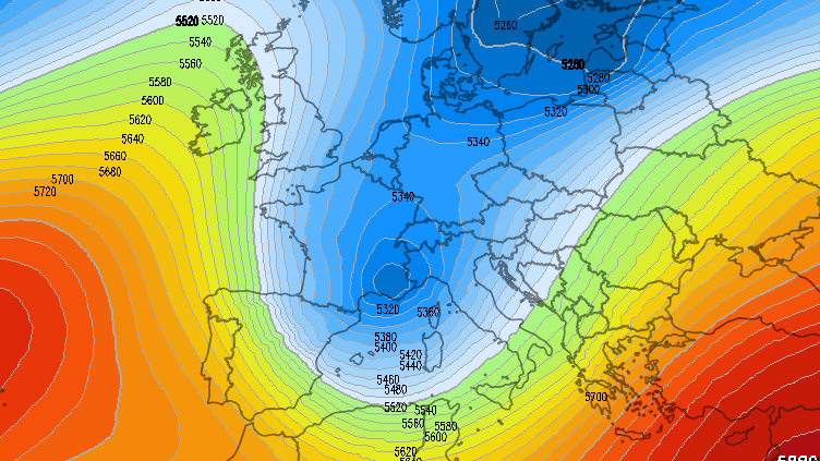 La vasta saccatura attualmente posizionata sull’Europa occidentale tenderà a muoversi lentamente verso est. Nel corso della sua evoluzione, questa struttura verrà alimentata da masse d’aria decisamente più fredda in quota di matrice artica. L’interazione tra l’aria fredda e il Mediterraneo favorirà l’approfondimento di un minimo depressionario che scivolerà dal Mar Tirreno verso i Balcani.