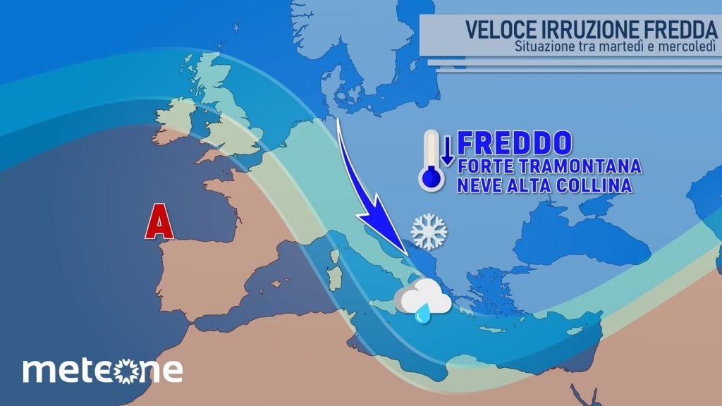 Puglia e Basilicata stanno per essere interessate marginalmente da una veloce irruzione di aria fredda che avrà come target principale Grecia e Balcani. Porterà una netta diminuzione delle temperature, forti venti settentrionale e rovesci anche nevosi in alta collina.