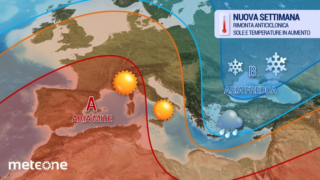 Mentre la massa d’aria fredda di matrice artica che ha lambito le nostre regioni è sfilata verso est, un vasto campo anticiclonico si espande sul Mediterraneo centro-occidentale inglobando anche l’Italia portando in dote aria più mite in quota. Questa dinamica garantirà tempo stabile e clima più mite per buona parte della settimana.