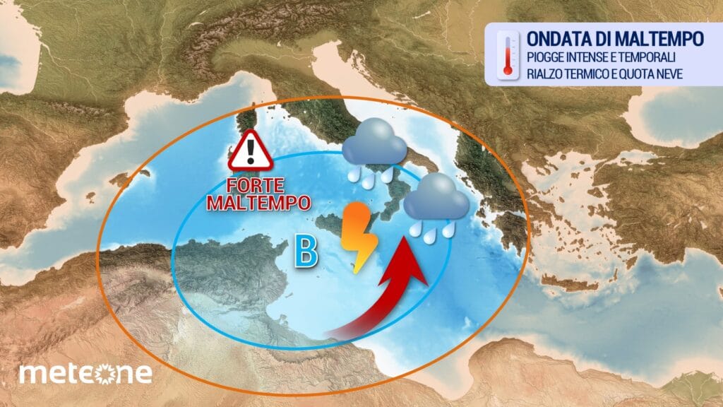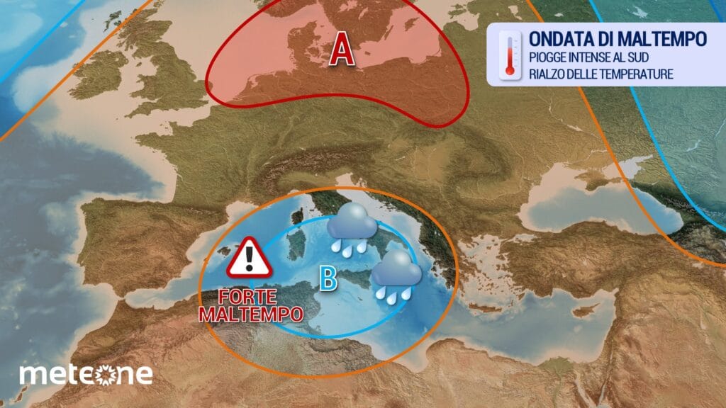 Dopo freddo e tanta neve in quota adesso tocca alle piogge con lo scirocco. Nel weekend è infatti attesa una nuova, forte ondata di maltempo che colpirà il centro-sud e in particolare i settori ionici: attese precipitazioni anche intense, anche temporali, mentre le temperature tenderanno ad aumentare.